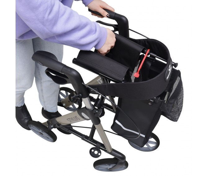 Com apenas 6,5Kg é de fácil transporte, fecha como livro, possui punhos ergonómicos para uma utilização confortável, equipado com refletores de segurança, travões com função de estacionamento, fácil de usar, faixa para encosto e trepa-passeios.